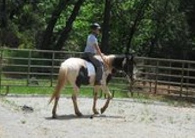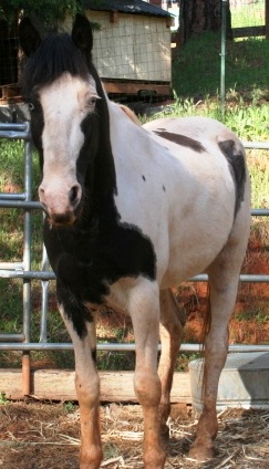 Skyler's 2nd foster home ( 3/5 to now ): ... I have ridden him twice. I am NOT a very experienced rider. I am also not a very confident rider. I agreed to give Skyler a try only because he is such a solid, sweet horse. In my opinion, he is green and is ready for the next level of training. He's not push button yet. He IS willing and wants to please. He didn't express any tendencies of bucking or anything like that while I was on him. I wish I had more experience and could provide him with more training. He will do very well with additional training. Sklyer is a super sweet horse. I think he would love to be connected to a person that would dote on him and shower him with loads of attention. He does LOVE attention and to be groomed. He's very patient and will drop his head into your arms for scratches.