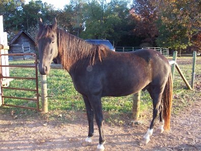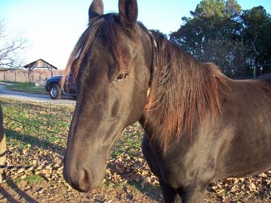 "...I think Boots would be a good starter horse...... He was my first horse purchase. He would be able to make the trip without any problem I think. As long as he is going to be with other horses, he should be okay. He doesn't like to be alone. .... He is not on any medications or special diet. We gave him the Marquis medicine for one month to kill the parasite and that is all he needed. He did lose a lot of weight though and so we fed him a high protein sweet feed to fatten him up and he is fine now. He is jet black now and not sun bleached anymore and looks good. ...... They get the disease by eating grain or hay where a possum has pooped that is carrying the parasite. And then they ingest it and it can damage their central nervous system if not caught early enough and treated right away. ......"