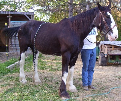 UPDATE 10/3/2007: Sarah's foster mom has now noticed some occasional stiffness in one of Sarah's hind legs. It improves when Sarah is out on pasture grazing, and it gets a little worse when she is not moving a lot (standing in a stall or out eating hay). Sometimes it's noticeable, sometimes not. It sounds very much like signs of Arthritis. So Sarah needs a home with pasture and daily joint supplement, but light work would still be possible as long as her symptom/condition doesn't get worse........