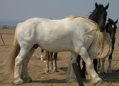 HOWEVER (there is always a "but", isn't there !?), Ben does NOT like my farrier, and vice versa. I'm not sure if Ben just doesn't like "loud" men (or strangers) in general, or if it's only my farrier........ Ben is very sensitive and always on the bottom of the pecking order, and he does not do well with aggression, screaming, etc. And my farrier, if he gets impatient or if a horse doesn't stand too well, he gets loud, then Ben gets even more nervous and things just get worse from there. Now we're at a point where I get nervous whenever we have to trim Ben, of course Ben senses it, and we both are wrecks on farrier day. Well, now we found a routine that works - it's not perfect, but it works. I put Ben in a stall (he's NEVER in a stall), give him lots of food, and then the farrier can trim him with little troubles..... I know that this is NOT the way it's supposed to be (and it's another reason why I think Ben might be happier with you), but it is SO HARD to find a farrier who trims drafts and doesn't charge an arm and a leg. Bad excuse, I know, but I'm trying my best to make everything work..........